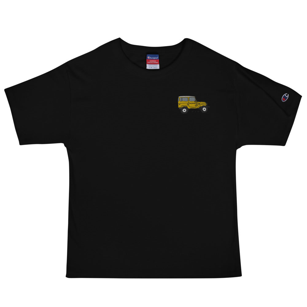 Enrich your wardrobe with this elegant design on a Champion t-shirt that has the brand logo embroidered on the left sleeve. This shirt features the side of the iconic Land Cruiser FJ40 in mustardThe 100% cotton fabric and deep armholes are sure to make it your favorite tee.